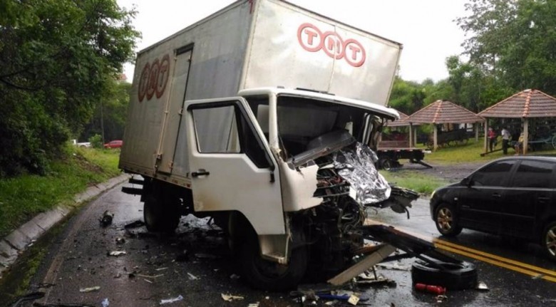 O motorista do caminhão, de 25 anos, não ficou ferido. Ele relatou que, em uma curva, o furgão bateu na lateral esquerda da carroceria no caminhão.
