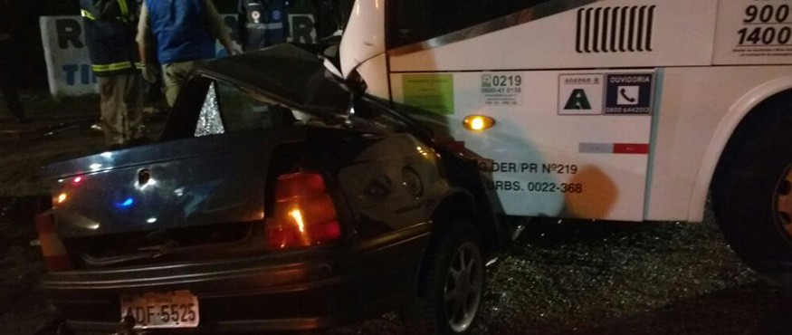 Um motorista de 23 anos morreu após se envolver em um acidente com um ônibus na esquina das Ruas Wilson Dacheaux Pereira com Pastor Antonio Pólito, no bairro Boqueirão, em Curitiba, no início da madrugada desta quinta-feira (13). Ele estava em um veículo Monza que foi atingido na lateral esquerda por um ônibus de turismo.