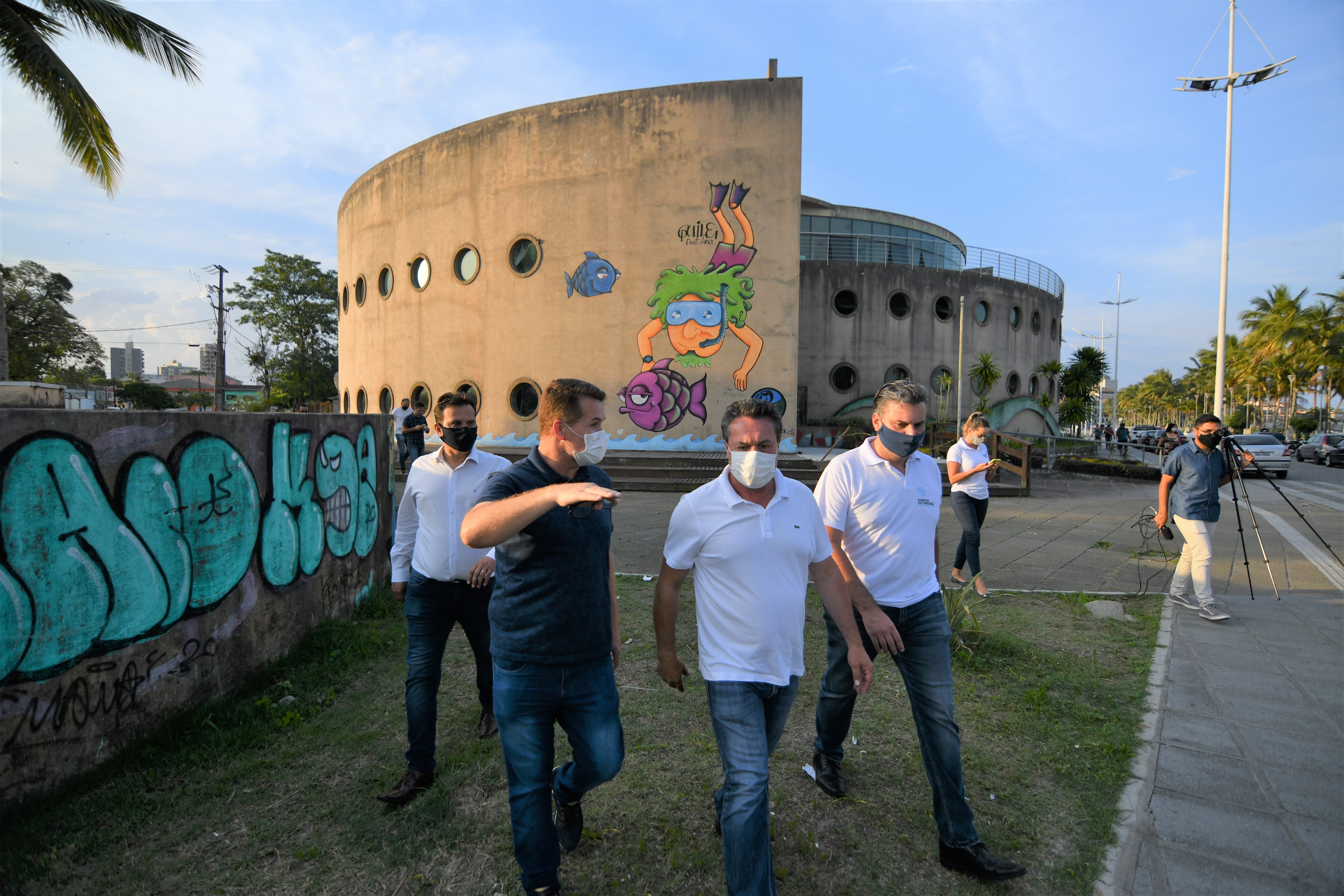 O prefeito Marcelo Roque e o secretário de Desenvolvimento Sustentável e Turismo do Governo do Estado, Márcio Nunes, visitaram o Aquário Marinho e seu entorno, nesta quinta-feira, 26, para anunciar o retorno das obras de revitalização do local.