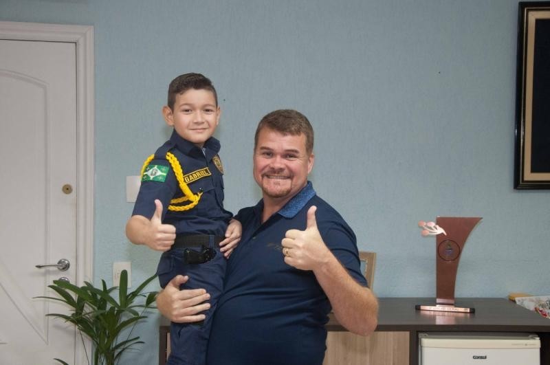 Na última quinta-feira, o prefeito da Cidade Mãe do Paraná, Marcelo Roque, recebeu a visita do menino Gabriel, estudante da rede municipal de ensino e fã da Guarda Civil Municipal.