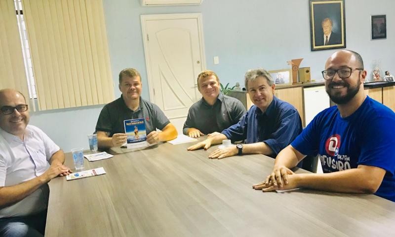 O reitor do Santuário do Rocio, Padre Joaquim Parron, esteve na Prefeitura para fazer a entrega do convite da Festa de Nossa Senhora do Rocio ao prefeito Marcelo Roque e ao vice-prefeito, Arnaldo Maranhão.