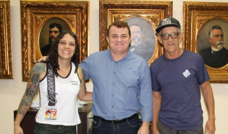 A visita de Janaína ao presidente da Câmara também contou com a presença do professor de boxe, Eraldo, pai da atleta.
