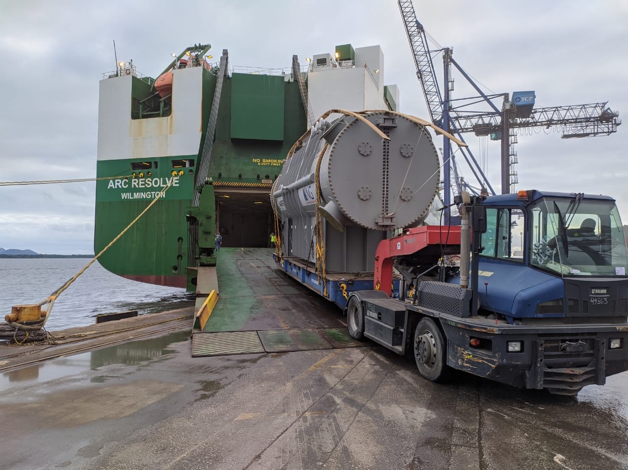 O navio Arc Resolve, que vai levar a peça até a Colômbia, atracou no porto paranaense no início da noite de sexta (6). A embarcação é do tipo "Roll on-Roll off", ou seja, geralmente utilizada para transportar veículos (carros, caminhões, ônibus) e outras cargas que entram e saem, sobem ou descem a rampa do navio, por próprios meios – rodando.