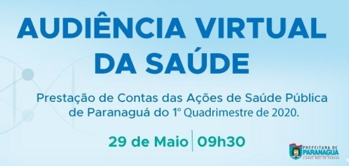 A Secretaria Municipal de Saúde realizará nesta sexta-feira, 29, Audiência Pública Virtual para apresentação do Relatório Detalhado do Quadrimestre Anterior (RDQA), referente a Prestação de Contas do 1.º Quadrimestre de 2020 relativo as ações de saúde pública.