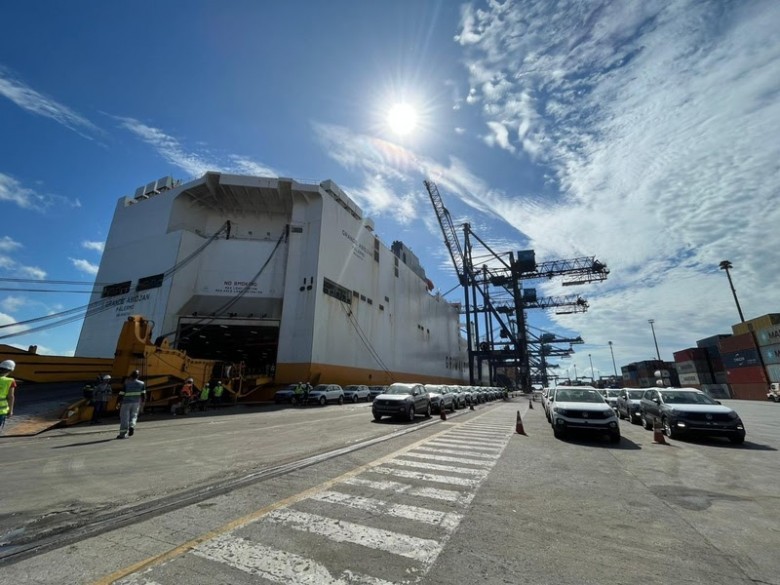 Uma curiosidade dos navios tipo Ro-Ro é a capacidade de transporte das cargas rolantes. Dependendo do modelo e tamanho, as cargas rolantes podem ser definidas como cargas projeto: materiais com dimensões ou pesos que não correspondem aos padrões tradicionais de contêiner. Nesta atracação, por exemplo, serão embarcados veículos leves, que terão acesso ao navio por uma rampa desde o cais do terminal.