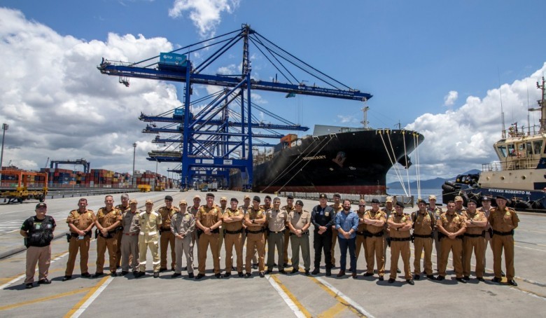 Vinte e oito alunos da disciplina de Políticas de Segurança Pública do Curso Superior de Polícia da Polícia Militar do Paraná (PMPR) participaram nesta semana de uma palestra sobre a integração das forças de segurança no combate à criminalidade em área portuária. O encontro, no Porto de Paranaguá, reuniu representantes de diversas agências e encerrou com uma visita ao cais.