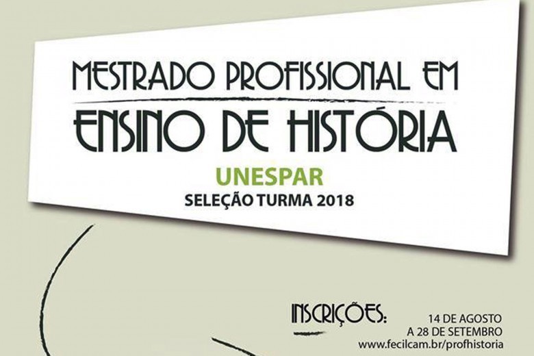 HISTÓRIA - Até quinta-feira (28) é possível efetuar a inscrição do Mestrado Profissional em Ensino de História (ProfHistória) exclusivamente em www.fecilcam.br/profhistoria. O curso, ofertado no campus de Campo Mourão, está disponibilizando 12 vagas para graduados em cursos de licenciatura que atuam na disciplina de História em escolas públicas ou privadas da rede básica de ensino.