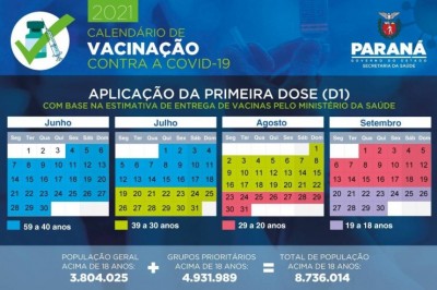 As doses devem ser direcionadas para a continuidade da vacinação na população em geral acima de 18 anos. A previsão é que entre terça-feira (20) e quarta-feira (21) o Paraná recebe mais 312,7 mil novas doses.