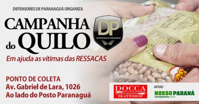 Qualquer pessoa pode ajudar levando um quilo de alimento não perecível na loja DOCCA SKATESHOP, situada na Av. Gabriel de Lara, 1026 ao lado do Posto Paranaguá.