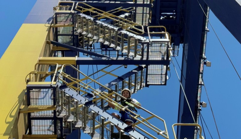 A oportunidade veio por meio da indicação de seu supervisor, e Adricelly não hesitou em agarrá-la. "A empresa dá oportunidades para quem se dedica, independentemente do sexo. Eu me esforcei e, quando chegou minha vez, fui sem olhar para trás", conta. Para assumir a nova posição, passou por treinamentos, cursos e testes, e enfrentou o medo de altura. "Antes, eu trabalhava no chão olhando para cima. No RTG, tudo se inverteu: agora, estou lá em cima, olhando para baixo. No início, foi assustador, mas hoje faz parte do meu dia a dia." Agora, seu olhar já está voltado para o próximo passo: operar o portêiner (STS), o único equipamento do Terminal que ainda não tem mulheres no comando.