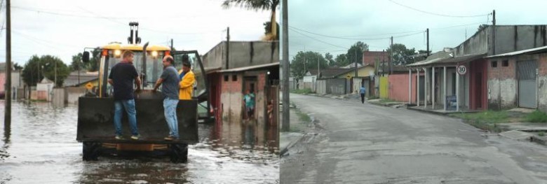 Após as chuvas: em março de 2017 e em janeiro de 2018, após melhorias no Jardim Iguaçu - Foto PMP