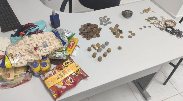 Foram recuperados vários gêneros alimentícios, um relógio de pulso, correntes, anéis e certa quantia em dinheiro.